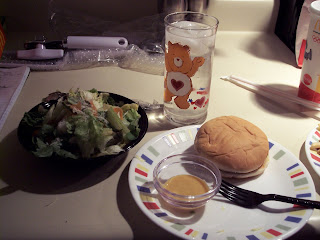 we ran home to get the coupons I forgot, so we could go get groceries. I thought my friend Alan would be joining us for dinner but those plans fell through. It's better for us all really, because I want him to see my house when it's complete. Anyhow, we spent like 2.5 hours at Wal-Mart and Kroger combined. The time was now 8:40.. bleh. I was NOT going home and putting all this mess up and then COOKING.. You're crazy. I settled for McDonald's, once again making a semi-decent choice. A